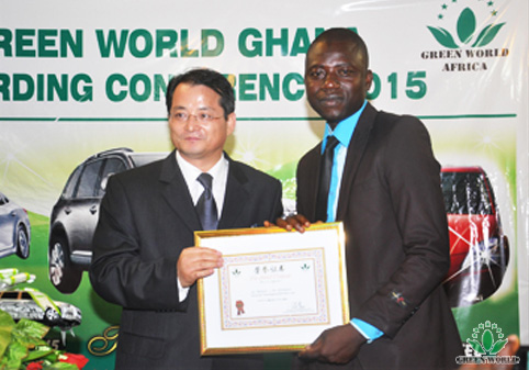 绿世界加纳分公司总经理檀成林先生为获中国旅游奖经销商颁奖
