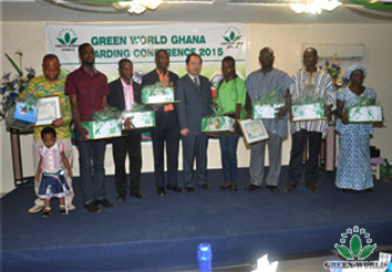 绿世界加纳分公司总经理檀成林先生为优秀专卖店颁奖