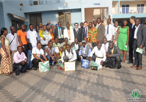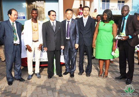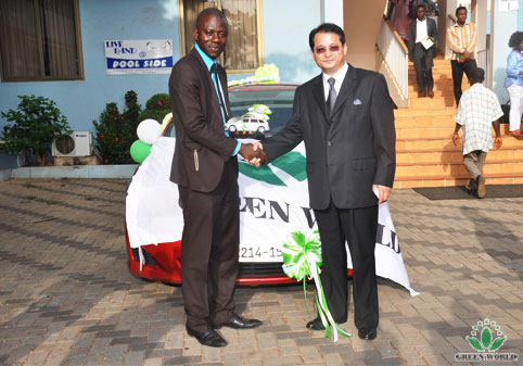 绿世界加纳分公司总经理檀成林先生,库玛西(Kumasi)分部经理Perfect女士,绿世界科特迪瓦分公司总经理孙福顺先生,绿世界喀麦隆分公司总经理张新文先生,加纳高级经销商Yaokomal Bright先生, 及来自加纳全国各地、科特迪瓦、贝宁、尼日利亚等邻国的高级经销商大约300多人参加了此次发车盛会。